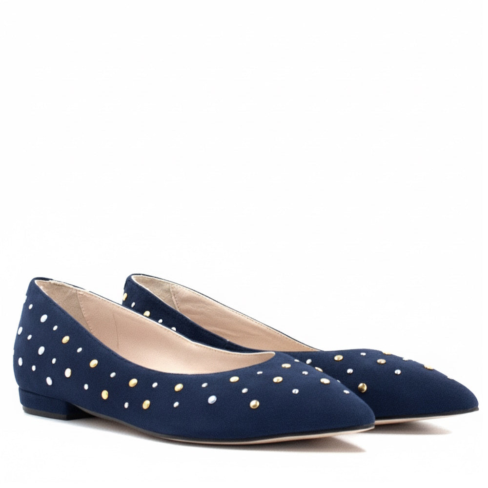 La bailarina CA-106, confeccionada en piel ante marino, combina elegancia y modernidad gracias a sus delicados remaches metálicos que realzan su diseño. Su textura suave y su color profundo la convierten en una opción ideal para quienes buscan un calzado con estilo y carácter.