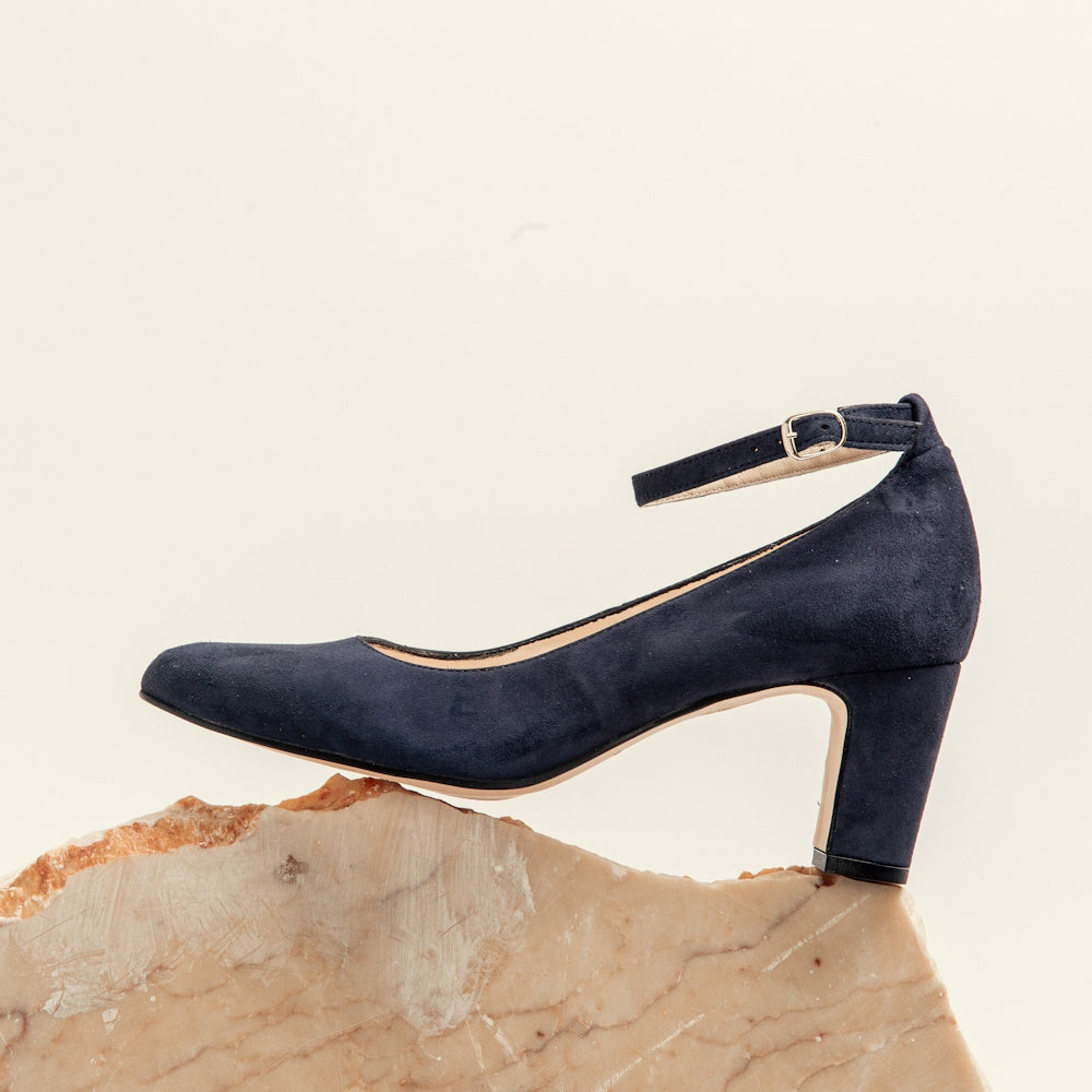 El salón Dominique en piel ante marino aporta un aire de frescura y modernidad con su color azul profundo y elegante. Ideal para quienes buscan un toque diferente sin perder la sobriedad, este zapato es perfecto para combinar con múltiples estilos. Equipado con un tacón de 65 mm que garantiza confort y una pisada segura, está fabricado 100% en España, asegurando calidad y durabilidad excepcionales.