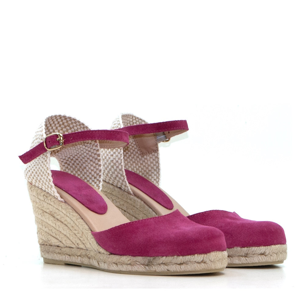 SANDALIA NURIA SERRAJE FUXIA PISO CUERDAS YUTE PLATAFORMA DE 85 MILIMETROS.