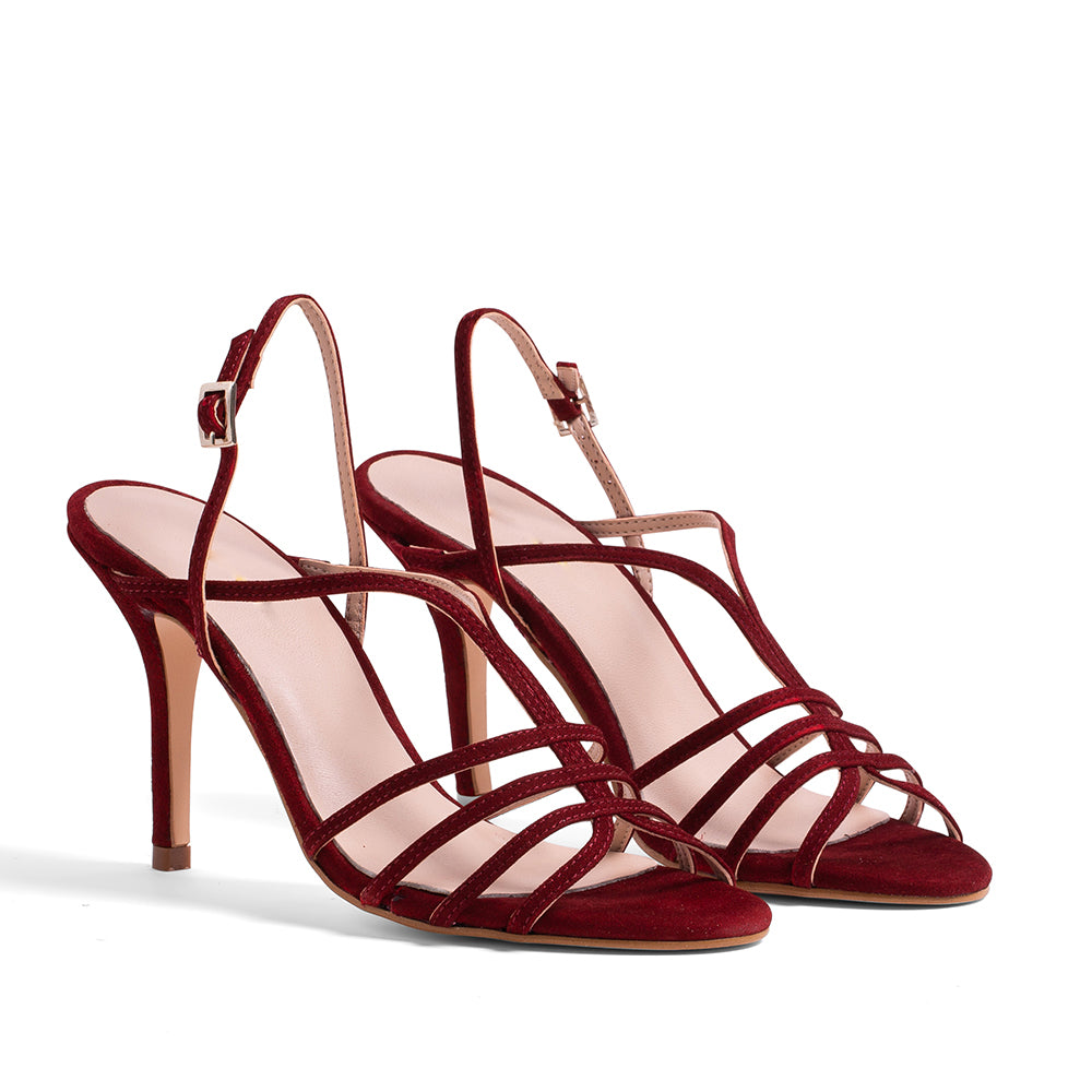 SANDALIA 3144 FABRICADO EN PIEL ANTE ROJO CON TACON DE 90mm