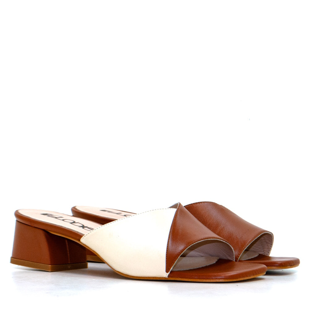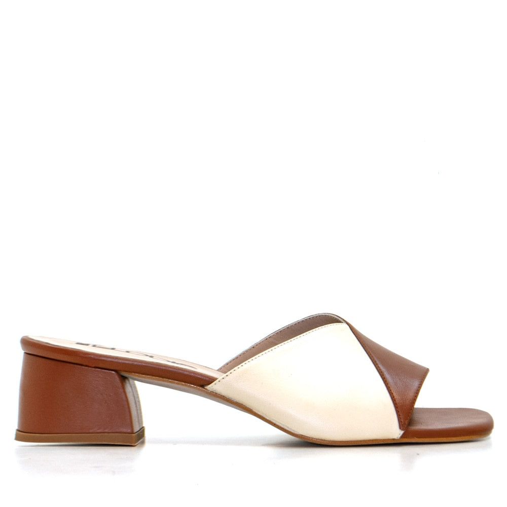 SANDALIA ZUECO GLENDALE EN PIEL NAPA CUERO/BEIGE