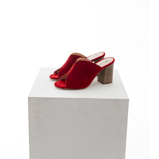 ZAPATO ZUECO COLETTE ANTE ROJO, CON TACÓN DE 80mm.